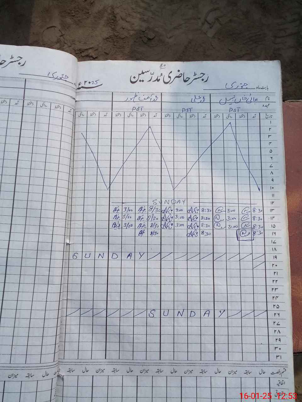 | CNIC | Full Name | Designation | R/C | Absence During Last Calender Month |