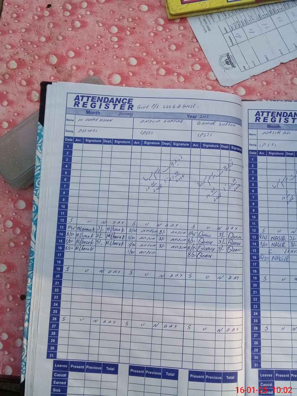 | CNIC | Full Name | Designation | R/C | Absence During Last Calender Month |