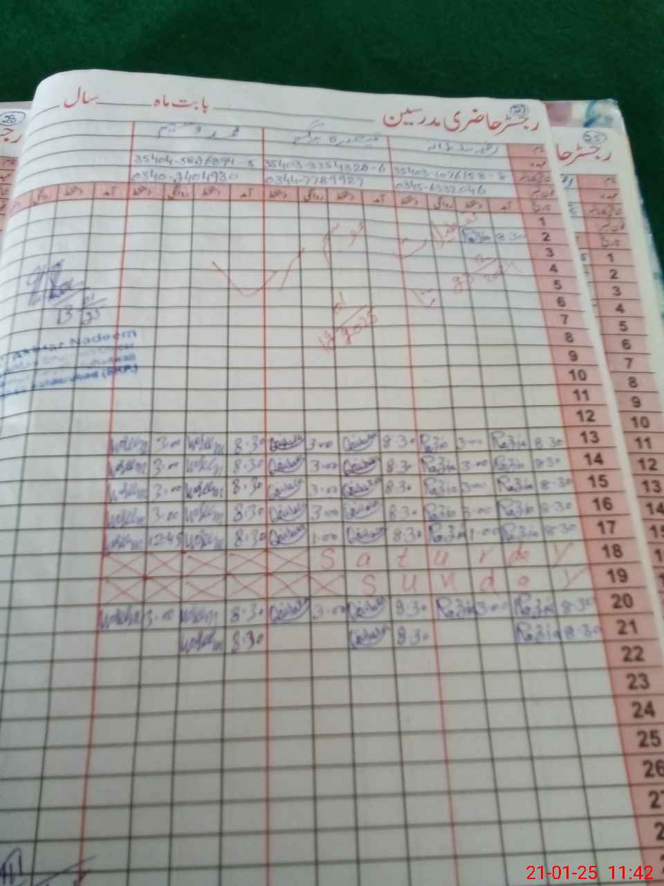 | CNIC | Full Name | Designation | R/C | Absence During Last Calender Month |