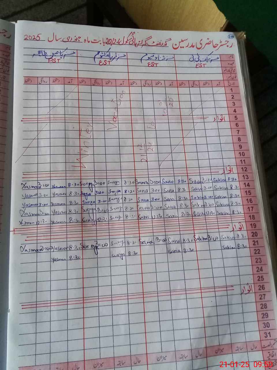 | Name: Uz**** Ja**** Designation: (School Headmaster's/Headmistress's) SST SCIENCE Phone/Cell Number: 03**** |