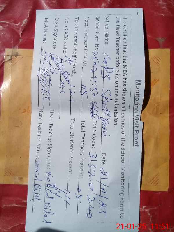 | EMIS Code: 31320240 | Name of School: GPS SHUKRANI | |||