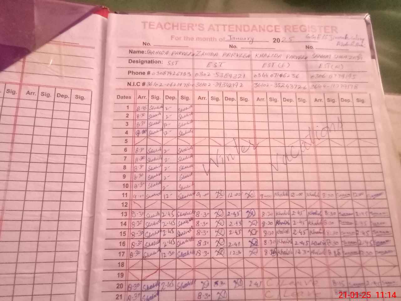 | Name: SH**** PA**** Designation: (School Headmaster's/Headmistress's) S.S.T.(general) Phone/Cell Number: 03**** |