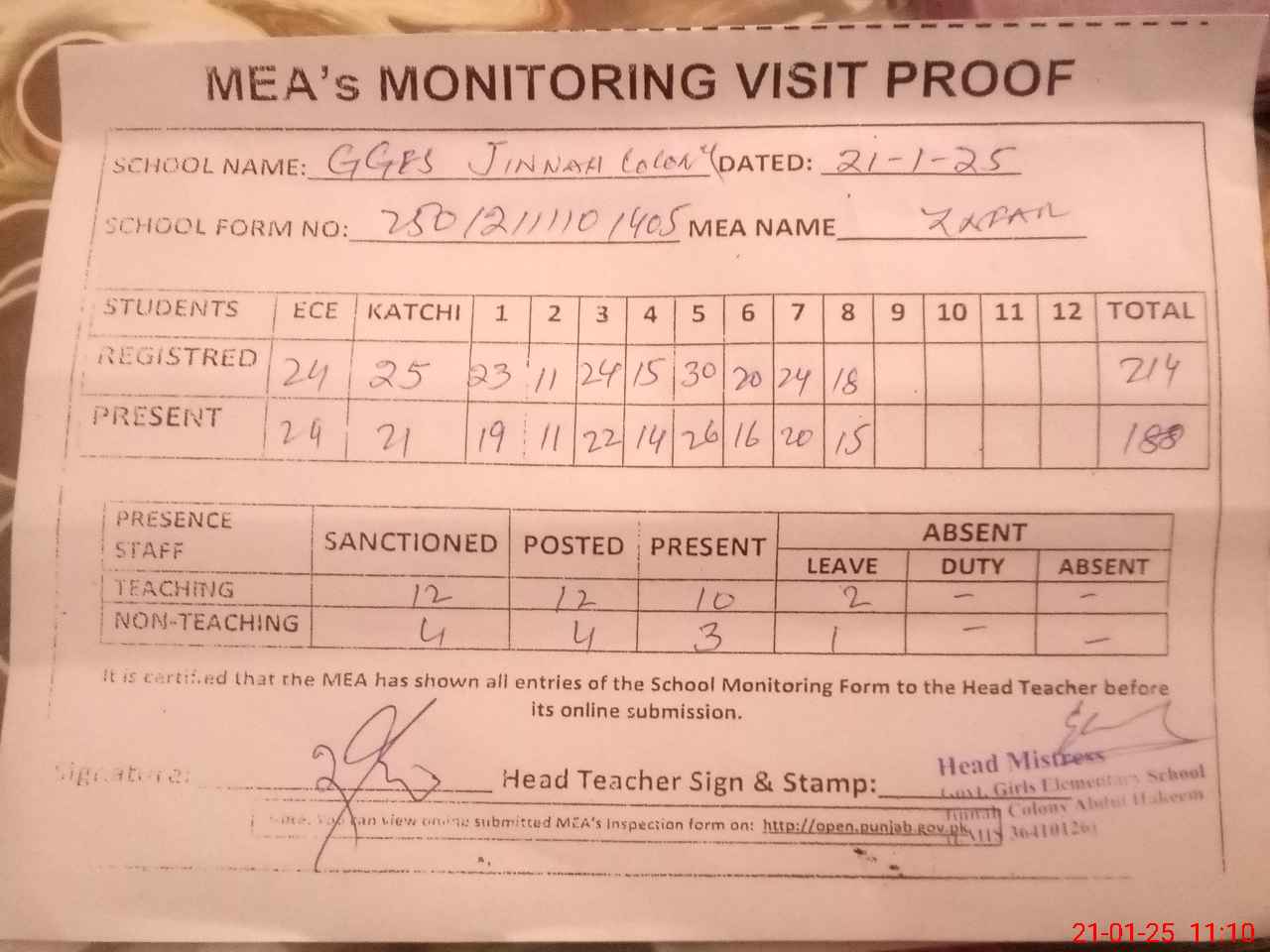| EMIS Code: 36410126 | Name of School: GGES JINNAH COLONY, ABDUL HAKIM | |||