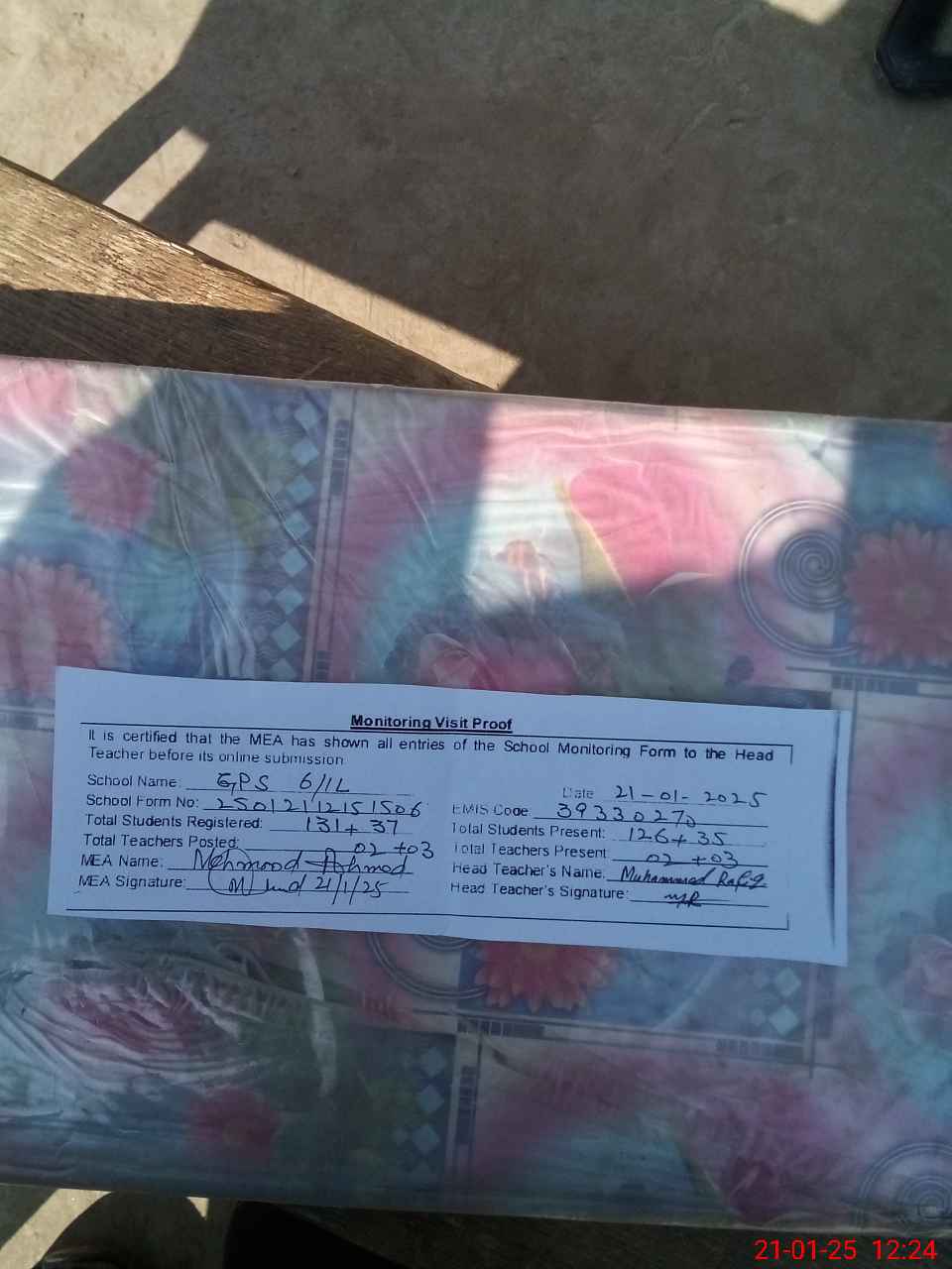 | EMIS Code: 39330270 | Name of School: GPS CHAK NO. 6/1-L | |||