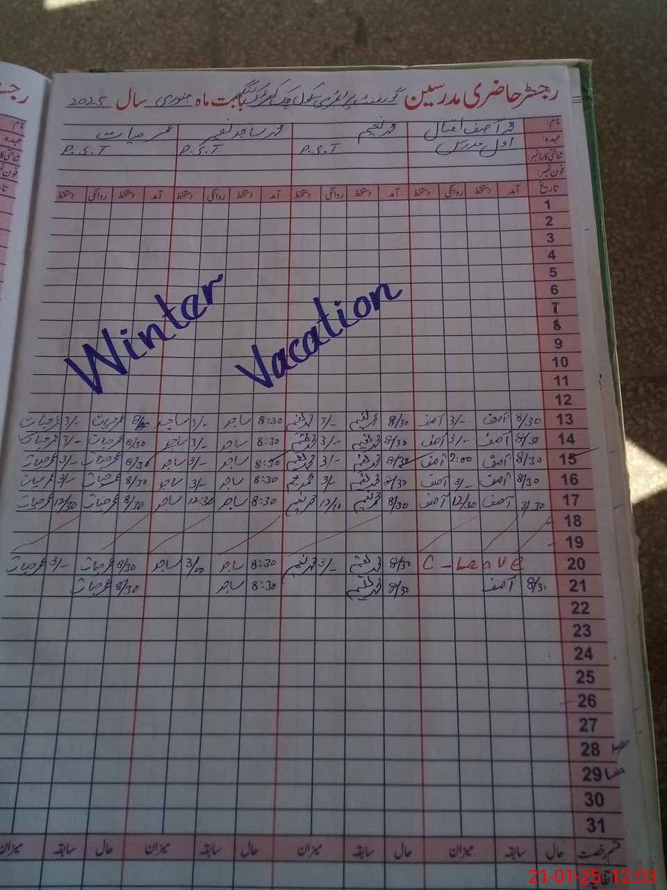 | CNIC | Full Name | Designation | R/C | Absence During Last Calender Month |