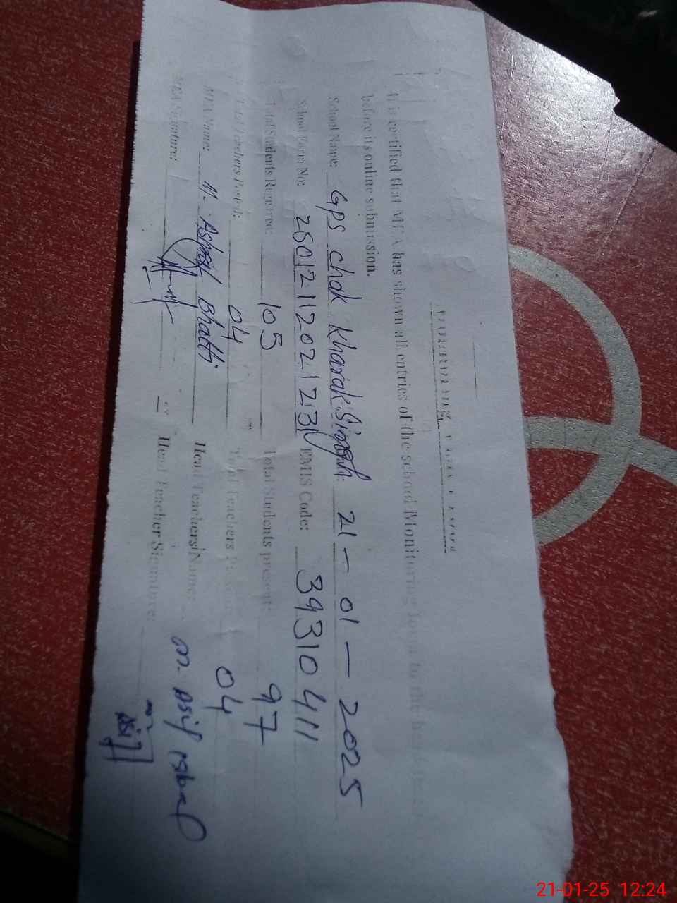 | EMIS Code: 39310411 | Name of School: GPS CHAK KHARAK SINGH | |||