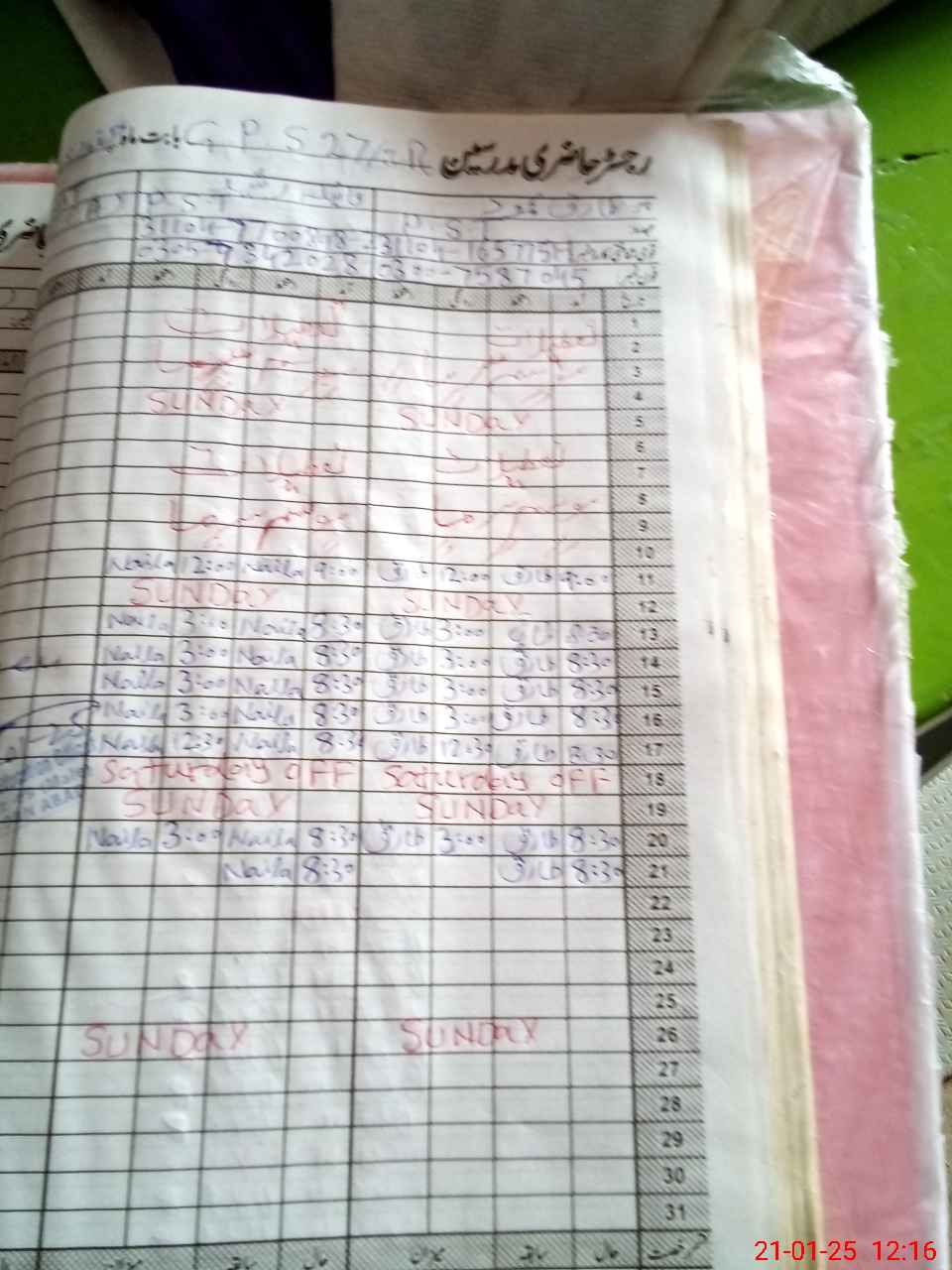 | CNIC | Full Name | Designation | R/C | Absence During Last Calender Month |