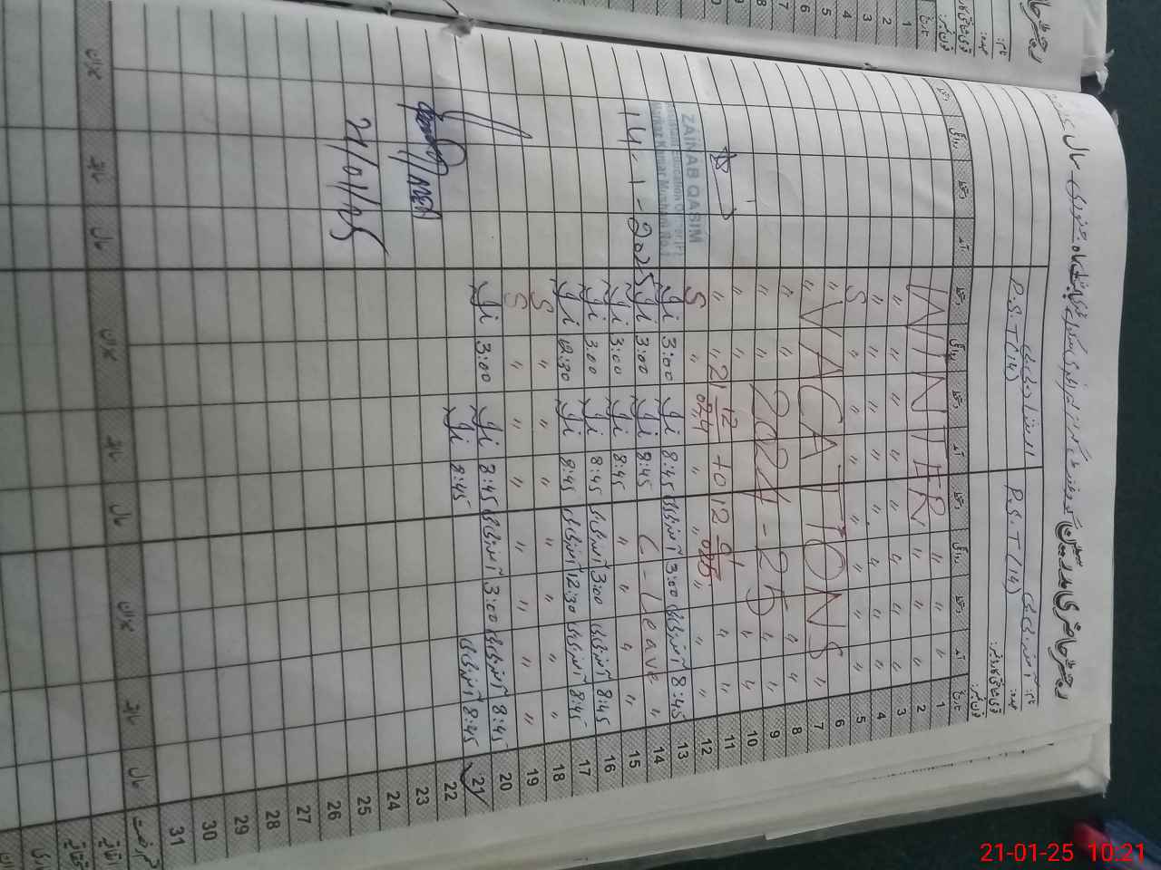 | CNIC | Full Name | Designation | R/C | Absence During Last Calender Month |