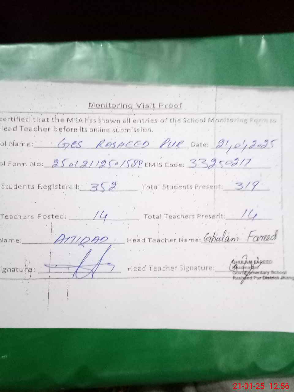 | EMIS Code: 33250217 | Name of School: GES RASHEED PUR | |||