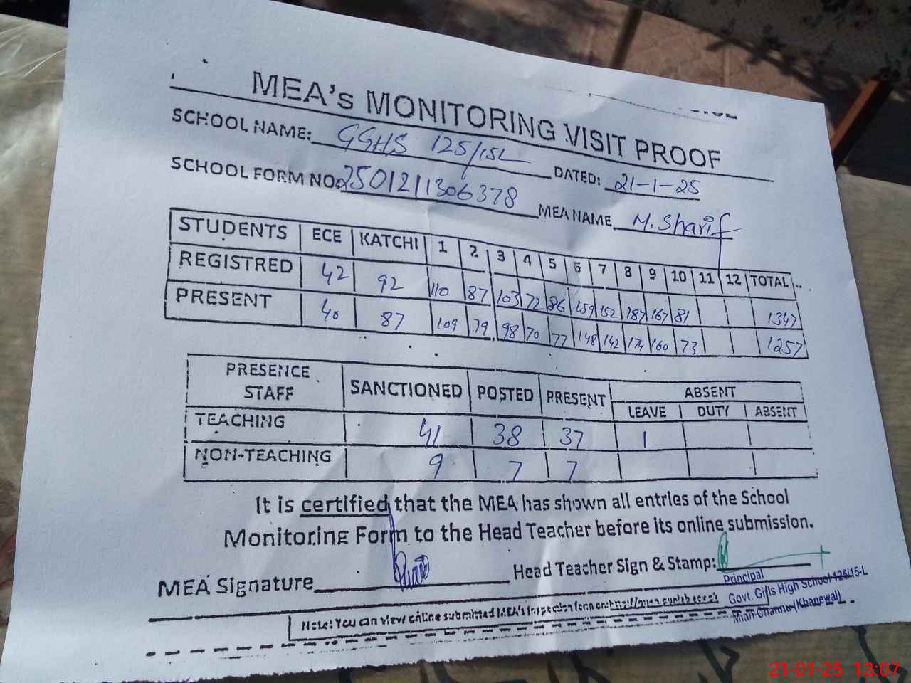 | EMIS Code: 36430043 | Name of School: GGHS 125/15-L, MIAN CHANNU | |||