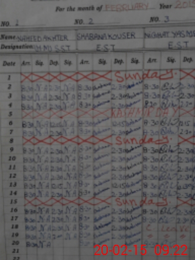 | CNIC | Full Name | Designation | R/C | Absence During Last Calender Month |