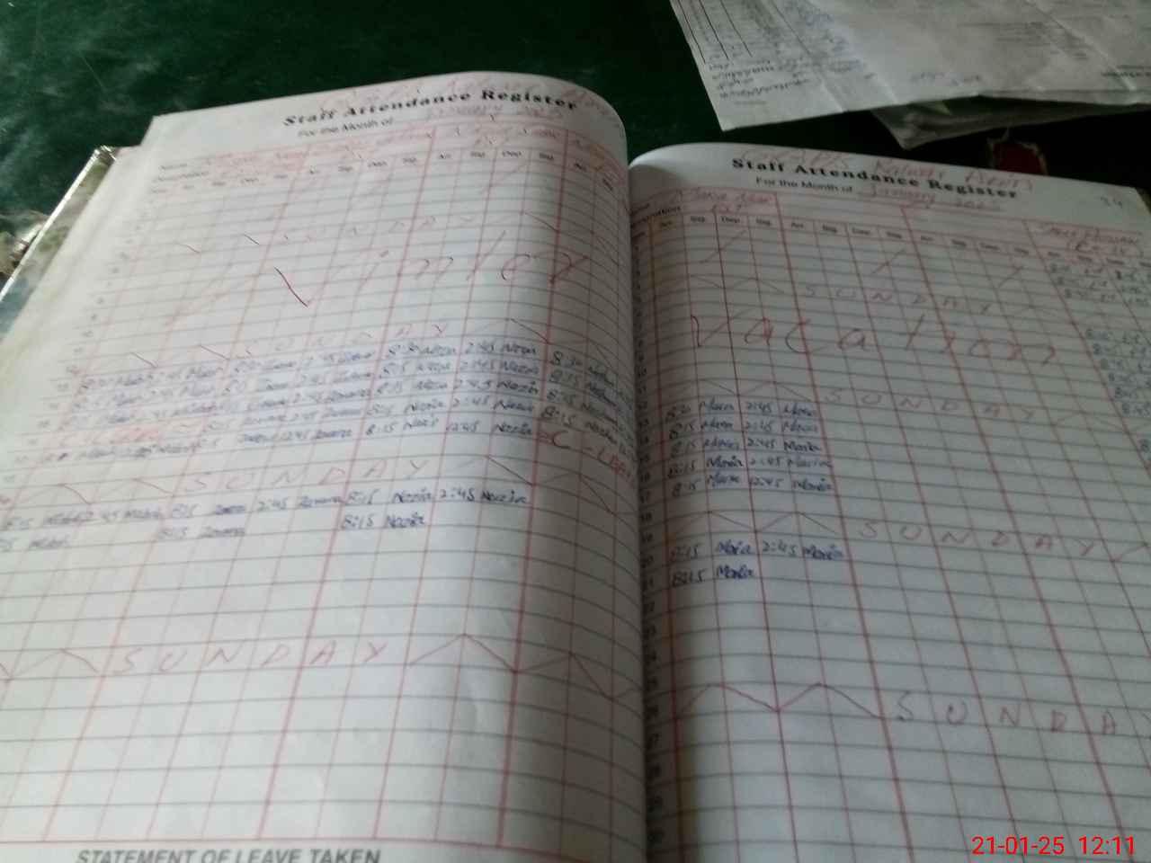 | 31**** | No**** Ja**** Mu**** | 1 | 1 | 0 | 0 | 0 | 0 | 0 | 0 | 0 | 0 | 0 | Absent (Un-Authorized) |