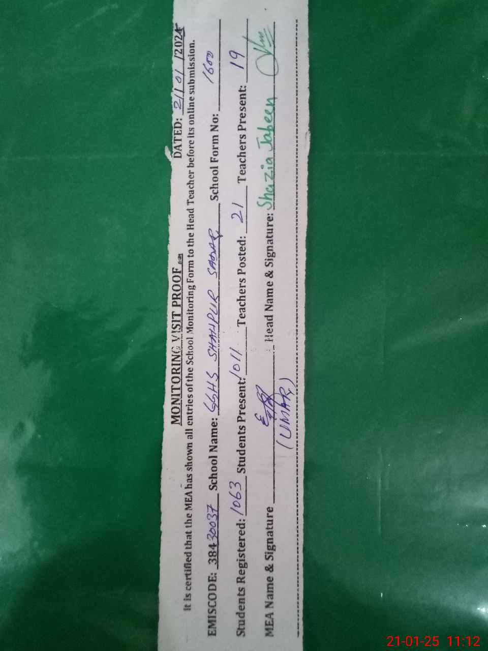 | EMIS Code: 38430037 | Name of School: GGHS SHAHPUR SADAR | |||