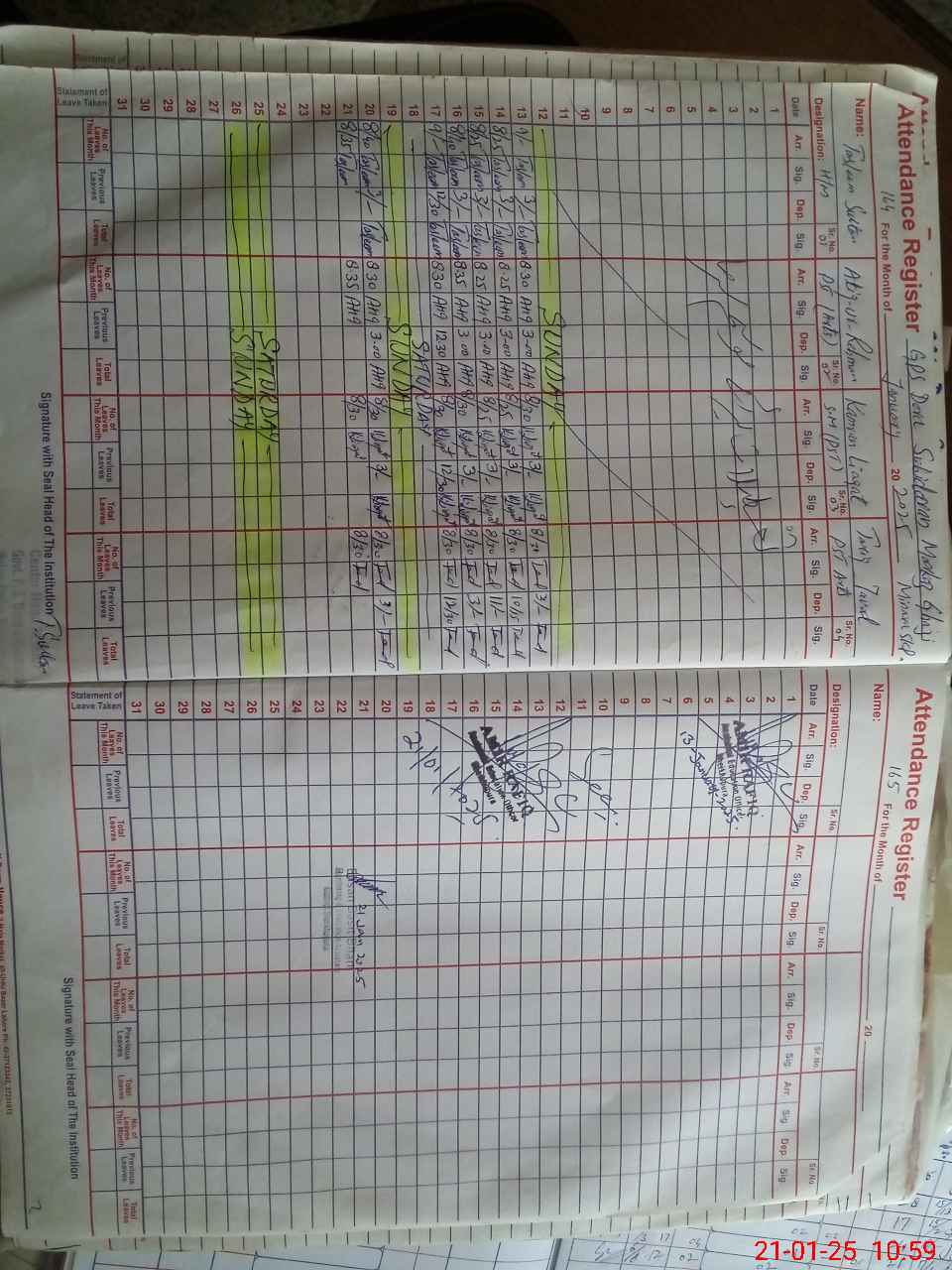 | CNIC | Full Name | Designation | R/C | Absence During Last Calender Month |