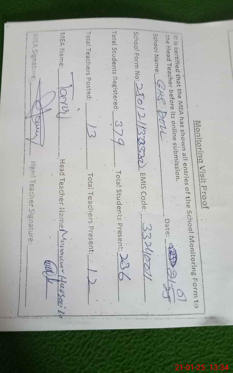 | EMIS Code: 33240011 | Name of School: GHS DULL | |||
