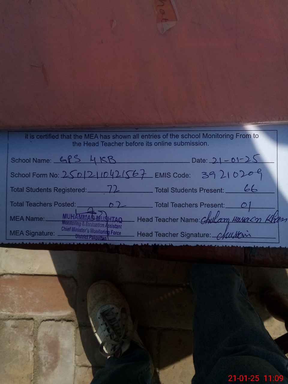 | EMIS Code: 39210209 | Name of School: GPS 4 KB PO PAKPATTAN | |||
