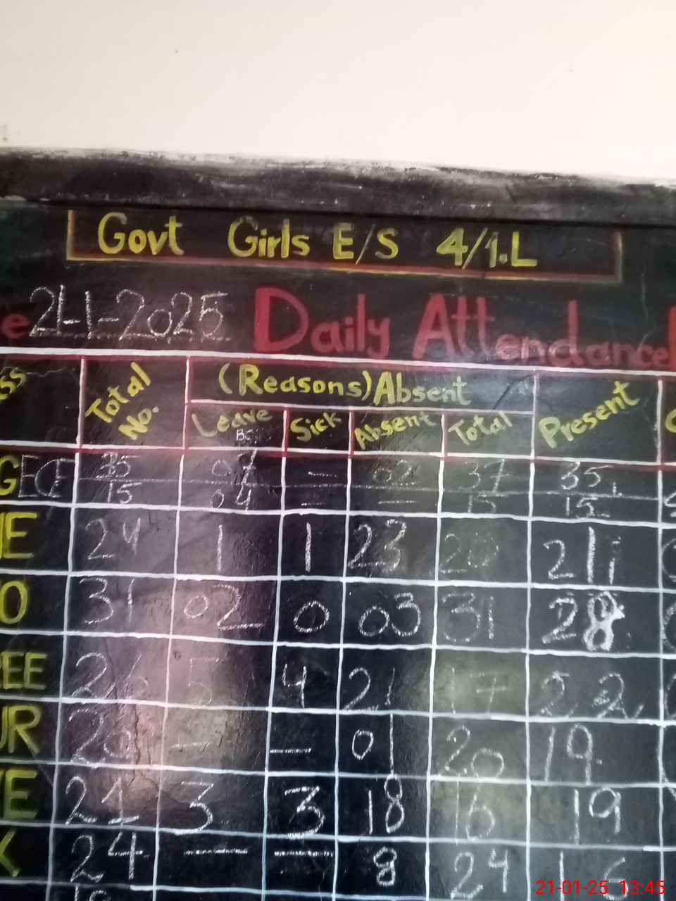 | No. of Students Present - Male | 4 | 0 | 7 | 1 | 2 | 4 | 0 | 3 | 0 | 0 | 0 | 21 | ||||