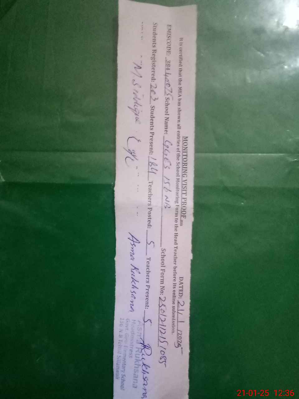 | Name: As**** Ru**** Designation: (School Headmaster's/Headmistress's) EST (AT) Phone/Cell Number: 03**** |