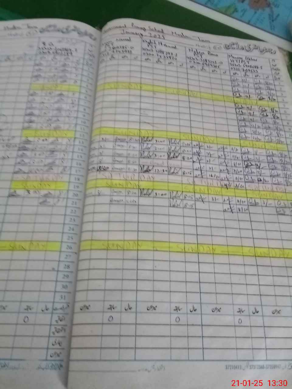 | CNIC | Full Name | Designation | R/C | Absence During Last Calender Month |