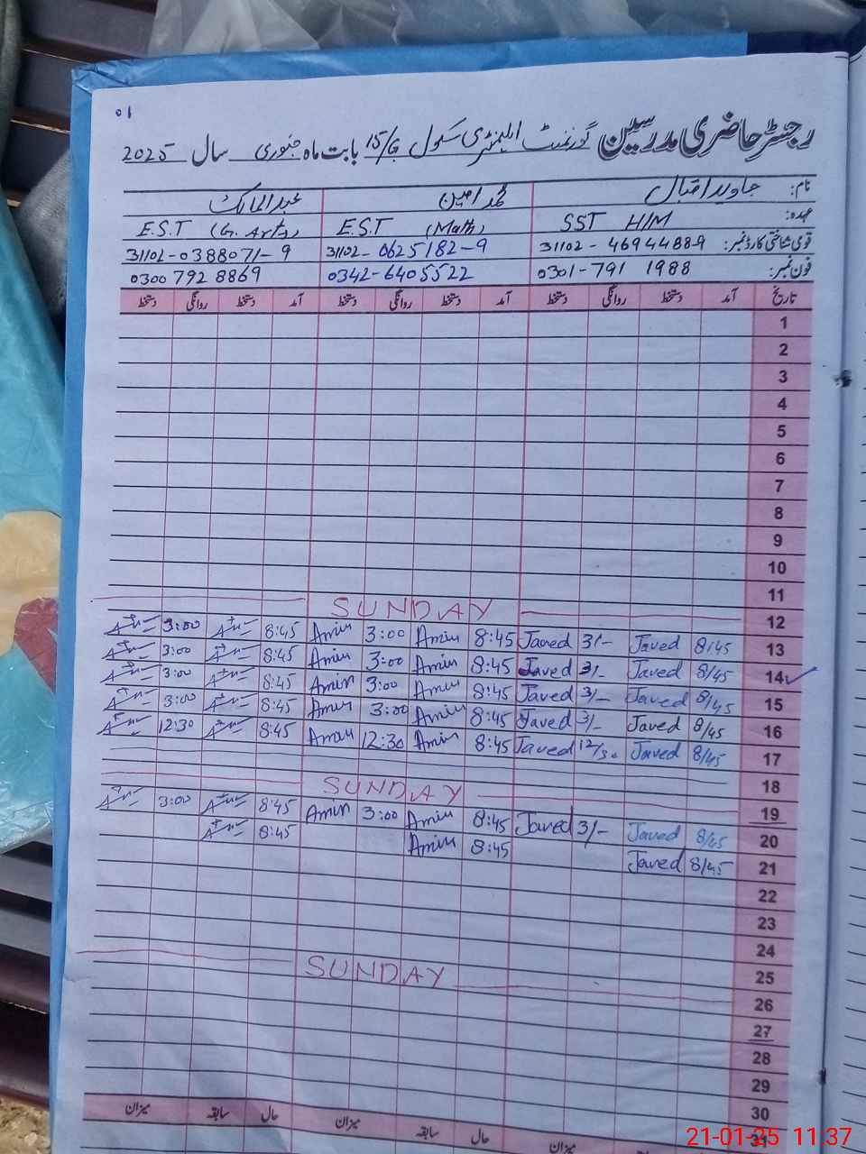 | Name: JA**** IQ**** Designation: (School Headmaster's/Headmistress's) SST GENERAL Phone/Cell Number: 03**** |