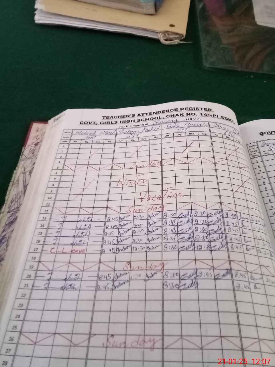 | 31**** | Sa**** Kh**** | 1 | 2 | 0 | 0 | 0 | 0 | 0 | 0 | 0 | 2 | Absent (Un-Authorized) | |