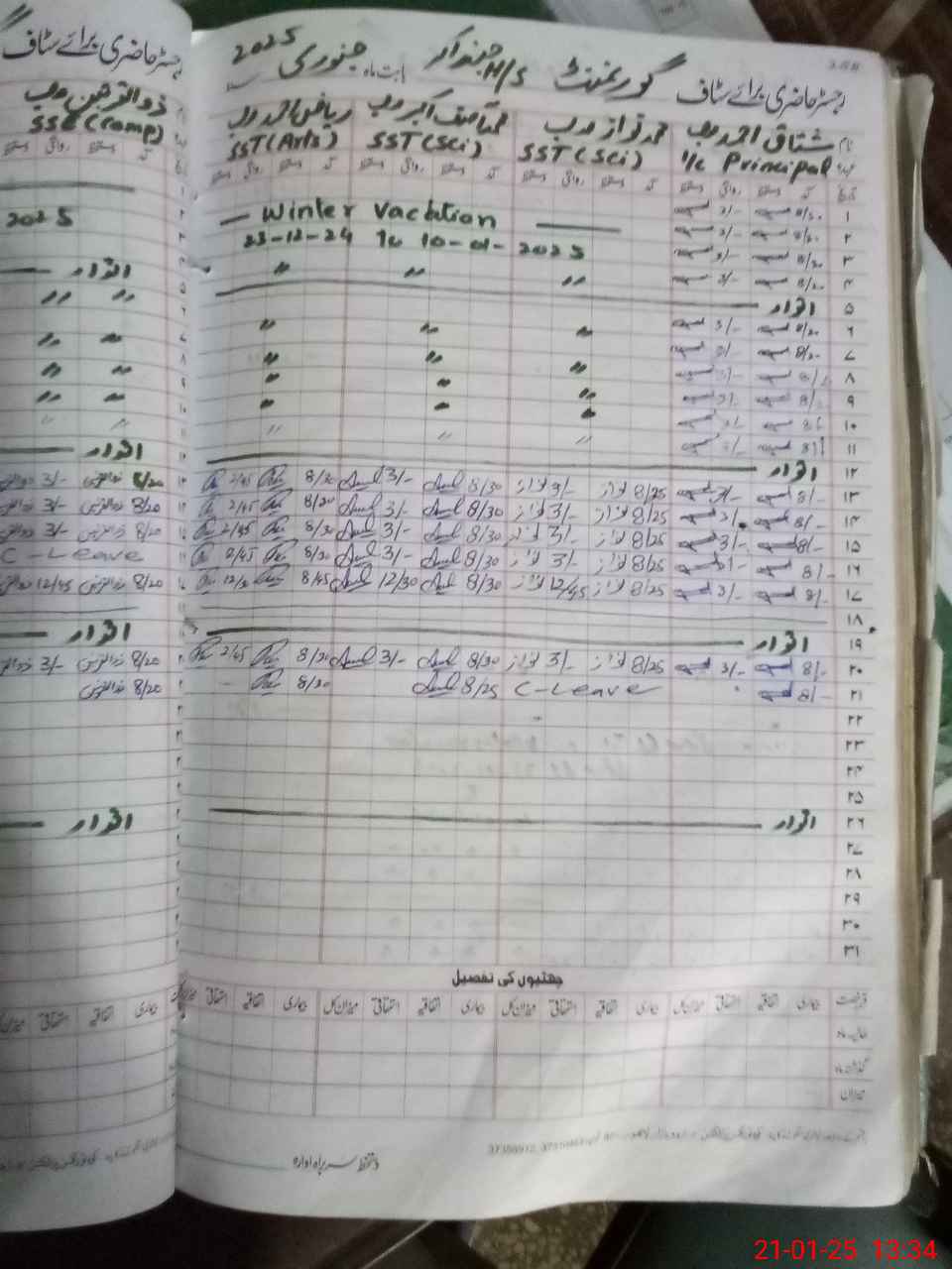 | CNIC | Full Name | Designation | R/C | Absence During Last Calender Month |