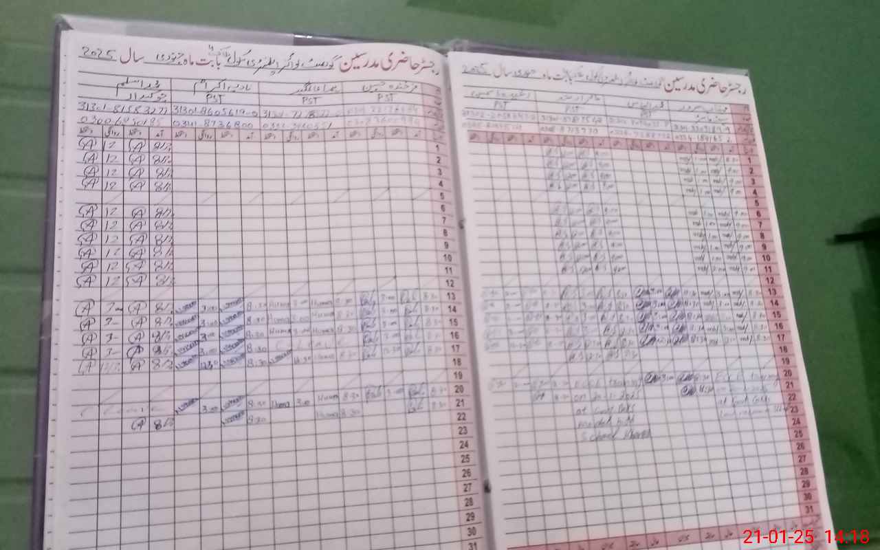 | Name: HM**** Ar**** Designation: (School Headmaster's/Headmistress's) EST Phone/Cell Number: 03**** |