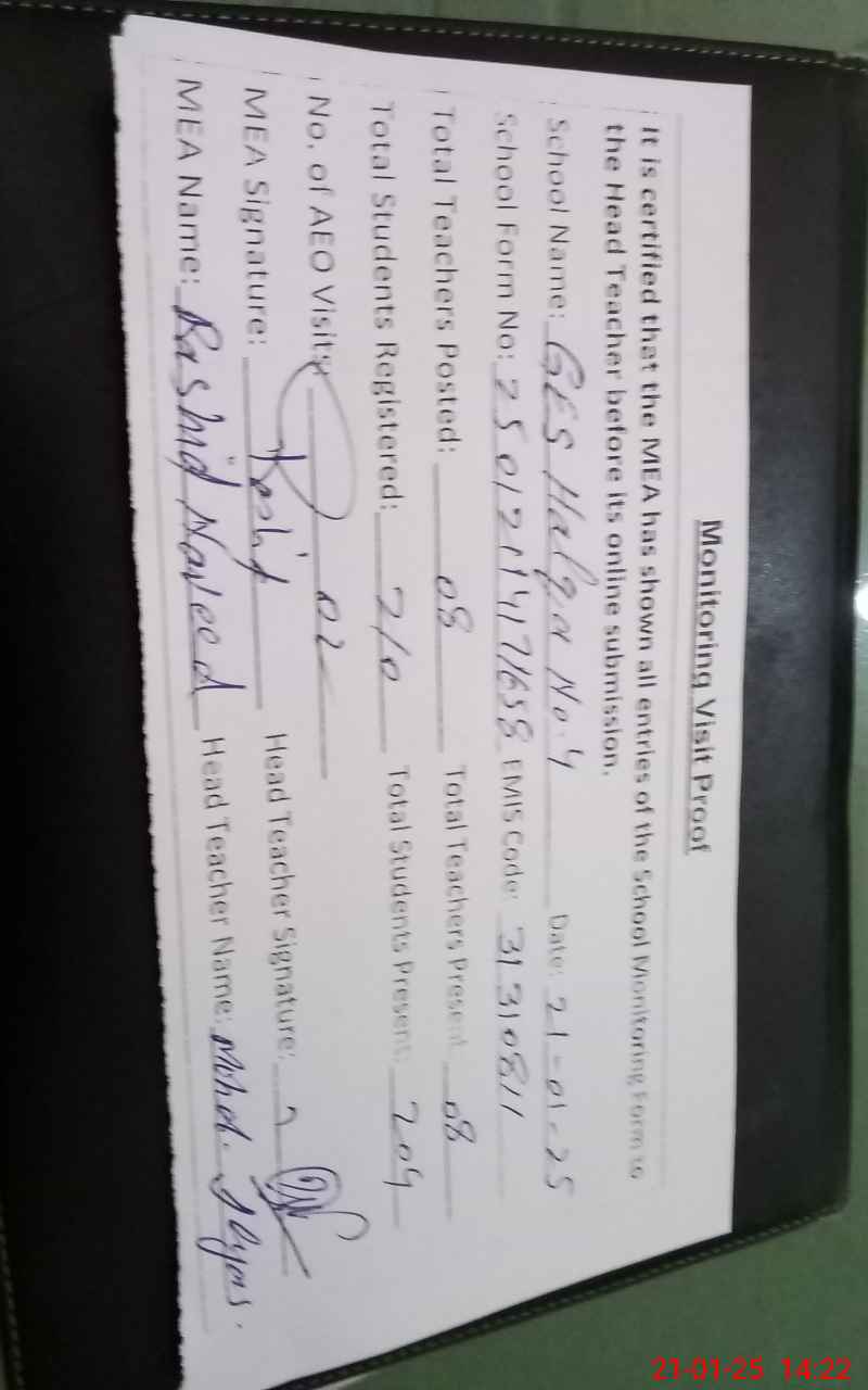 | EMIS Code: 31310811 | Name of School: GES HALQA NO 4 | |||