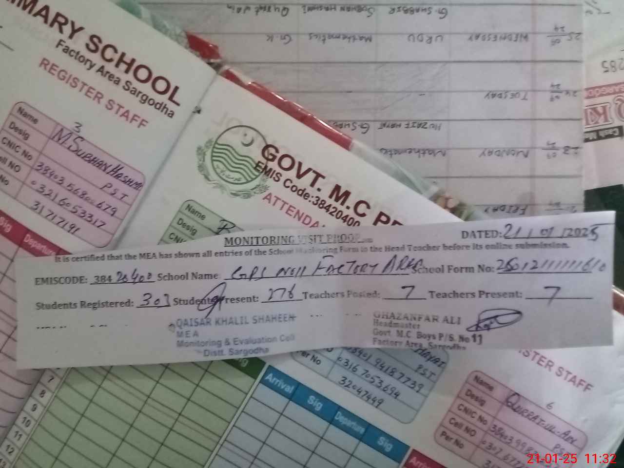 | EMIS Code: 38420400 | Name of School: GPS MC NO. 11 FACTORY AREA SARGODHA | |||