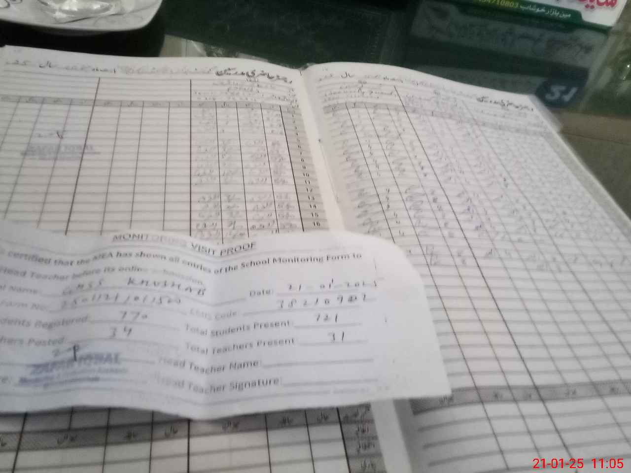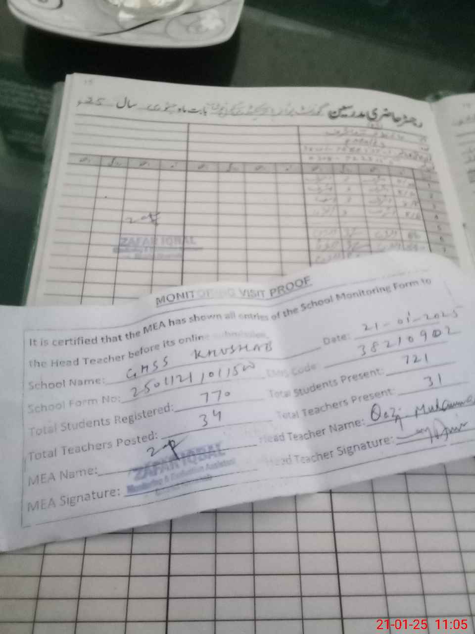 | Attendance Register | Head Teacher | MEA with School | Visit Proof |