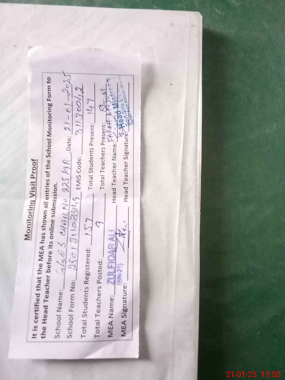 | EMIS Code: 31130042 | Name of School: GGES CHAK NO 225/9-R | |||