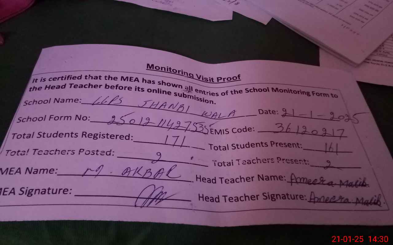 | EMIS Code: 36120217 | Name of School: GGPS JHANBI WALA SHUJABAD DISTT. MULTAN | |||