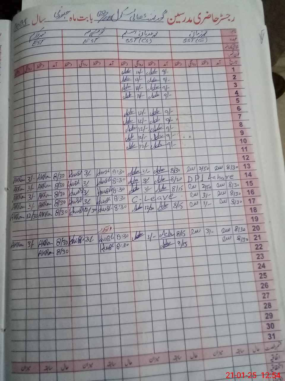 | CNIC | Full Name | Designation | R/C | Absence During Last Calender Month |