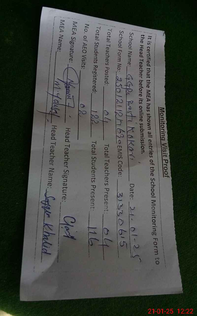 | EMIS Code: 31330615 | Name of School: GGPS BAST KOKARI | |||