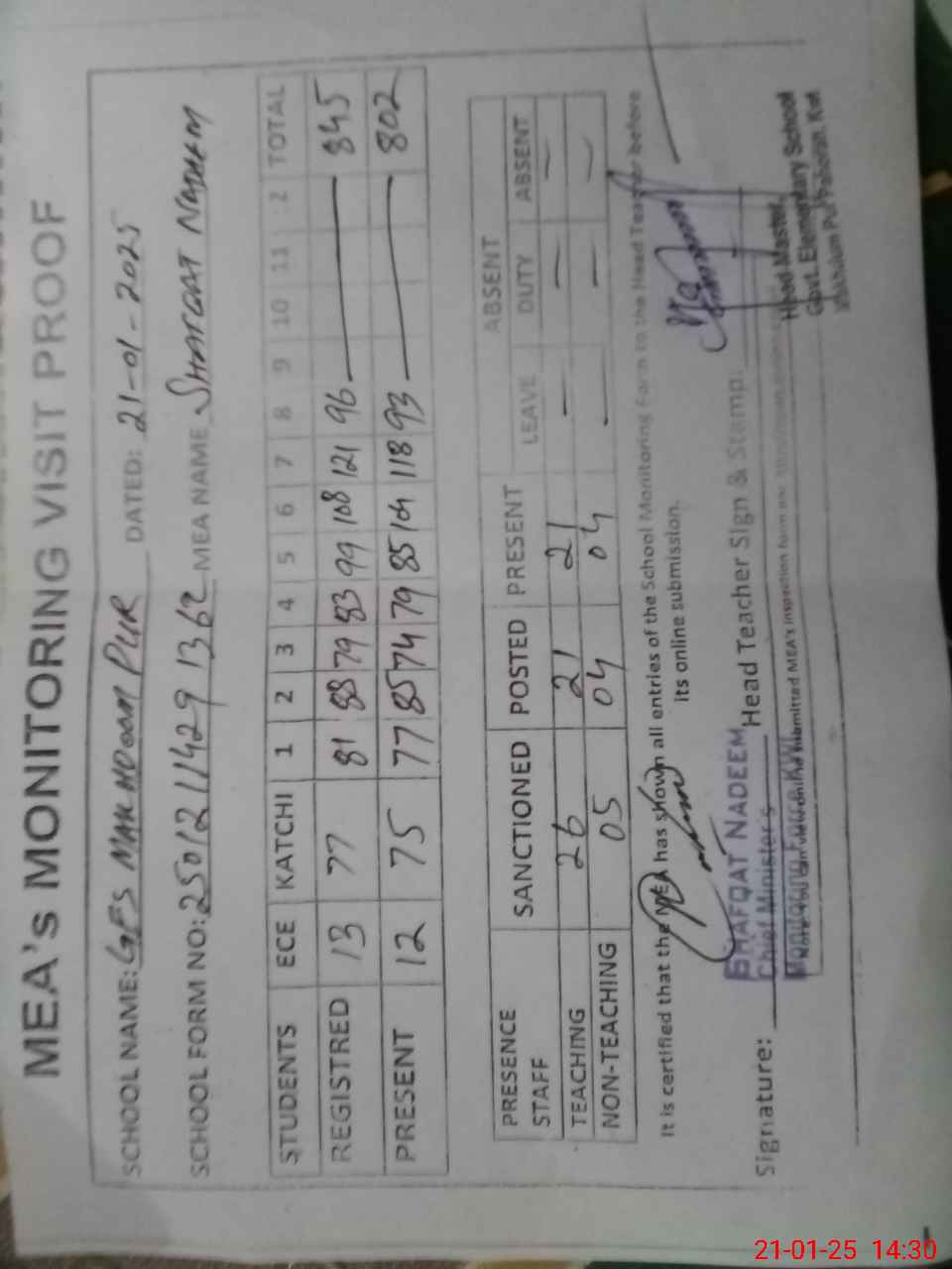 | EMIS Code: 36420062 | Name of School: GES MAKHDOOM PUR, KHANEWAL | |||