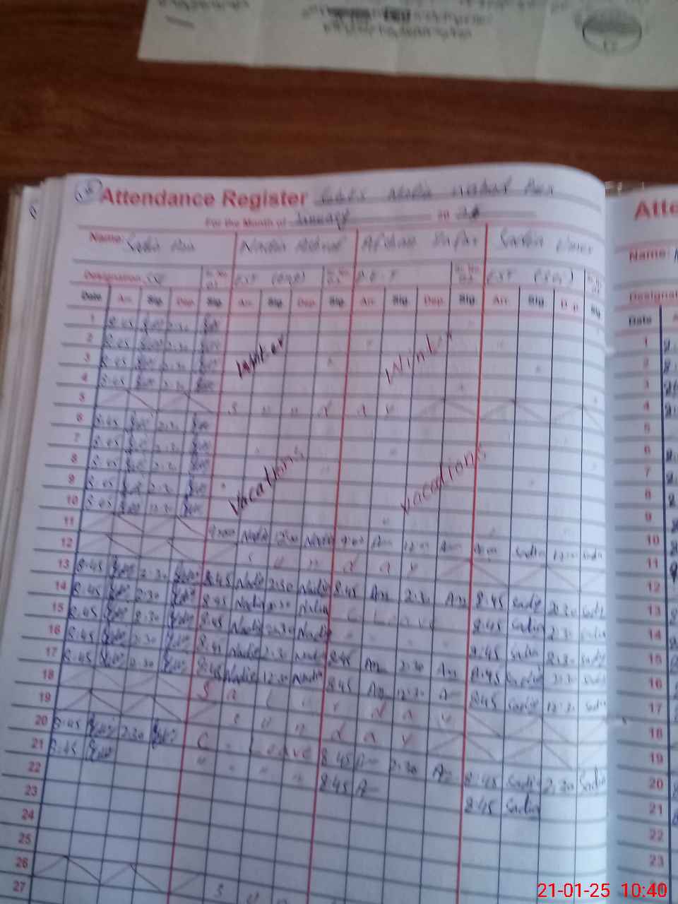 | 31**** | Na**** As**** | Regular | 2 | 0 | 0 | 0 | 0 | 0 | 0 | 0 | 2 | Absent (Un-Authorized) | |