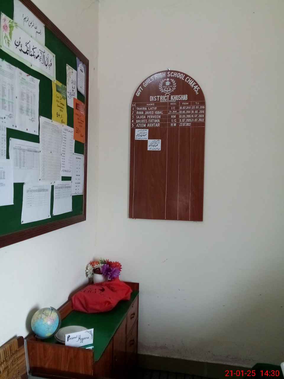 | District: KHUSHAB | Tehsil: KHUSHAB | Markaz: CHAK NO 50/MB (FEMALE) | Level: High | |