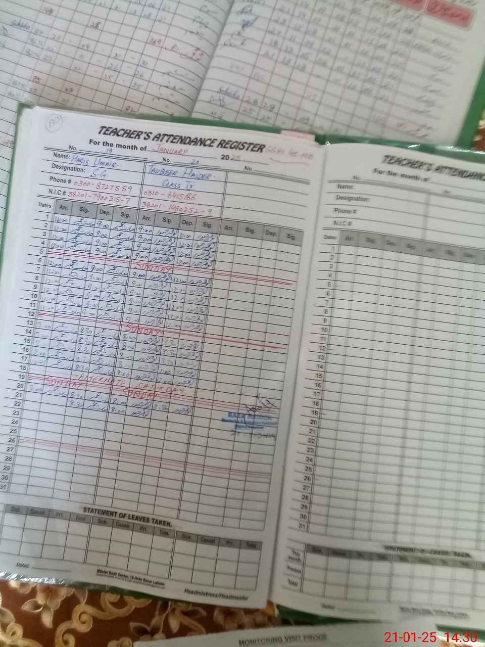 | Name: Hi**** Bi**** Designation: (School Headmaster's/Headmistress's) Headmaster Phone/Cell Number: 03**** |