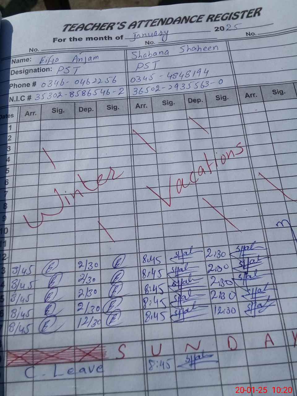 | Name: EI**** AN**** Designation: (School Headmaster's/Headmistress's) PST Phone/Cell Number: 03**** |