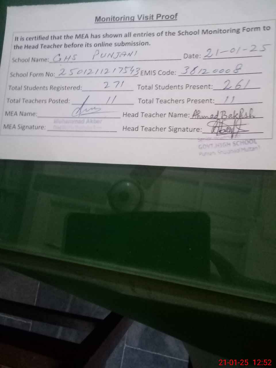 | Certified that this School was Inspected by the Undersigned MEA/DMO Today and the Information Stated Above is as Per Record. | |||||