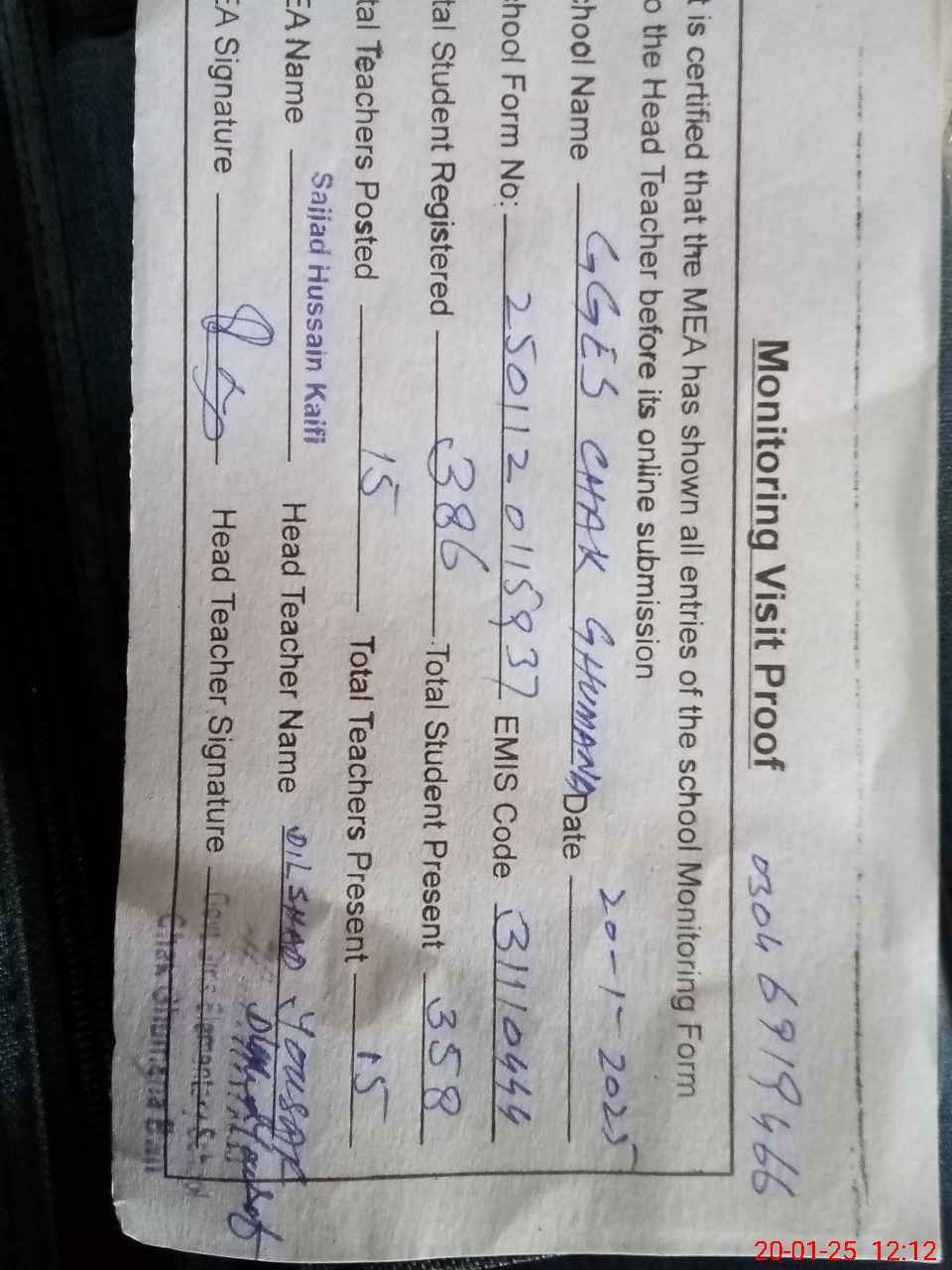 | EMIS Code: 31110444 | Name of School: GGES CHAK GHUMANA | |||
