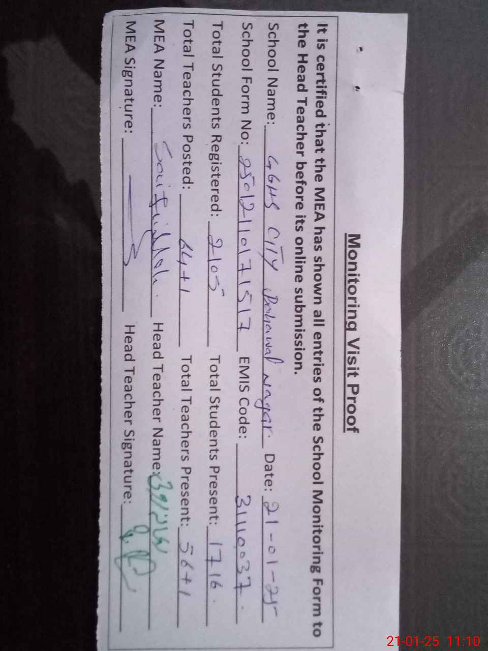 | EMIS Code: 31110037 | Name of School: GGHS CITY BAHAWALNAGAR | |||