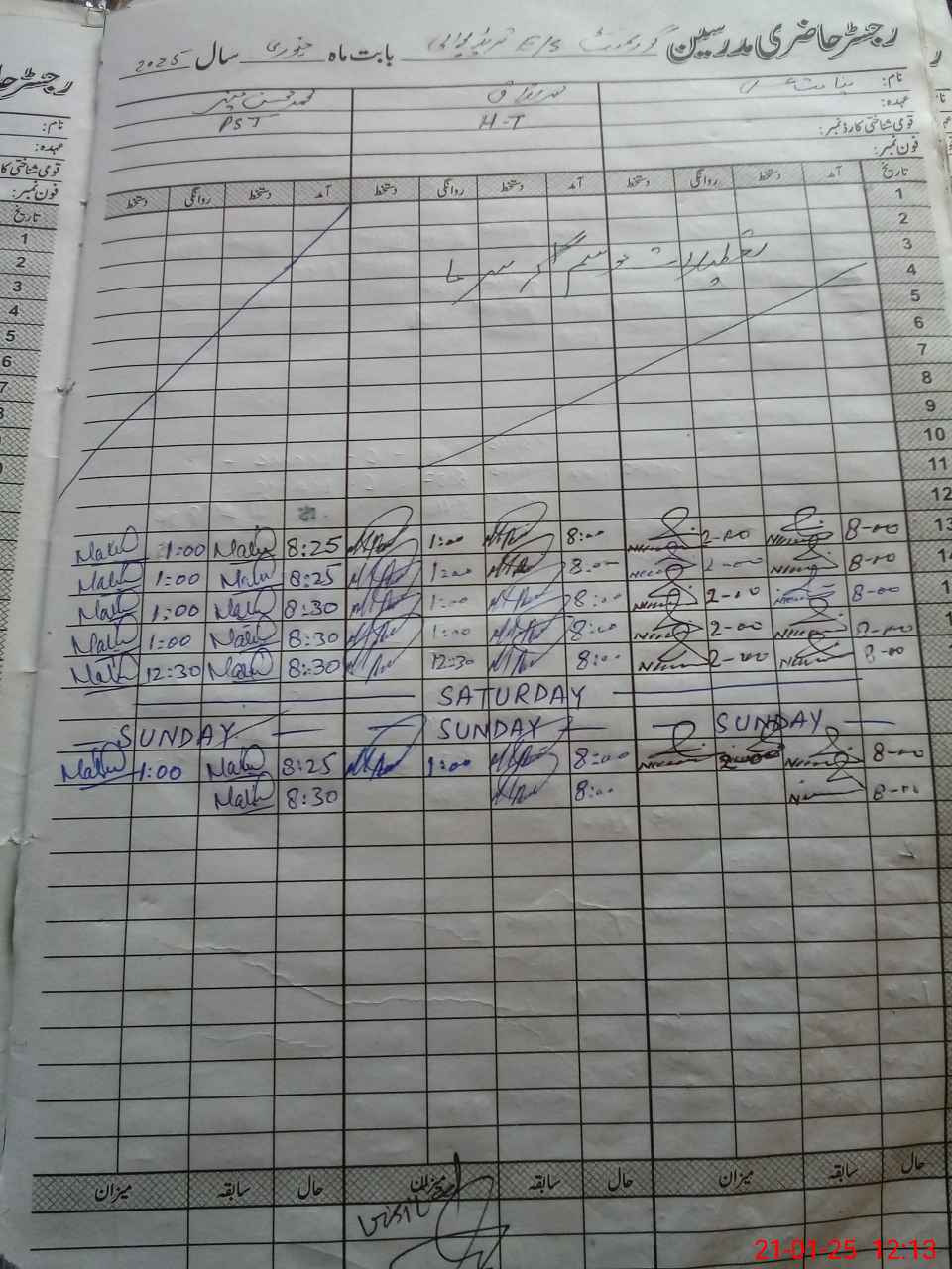 | CNIC | Full Name | Designation | R/C | Absence During Last Calender Month |