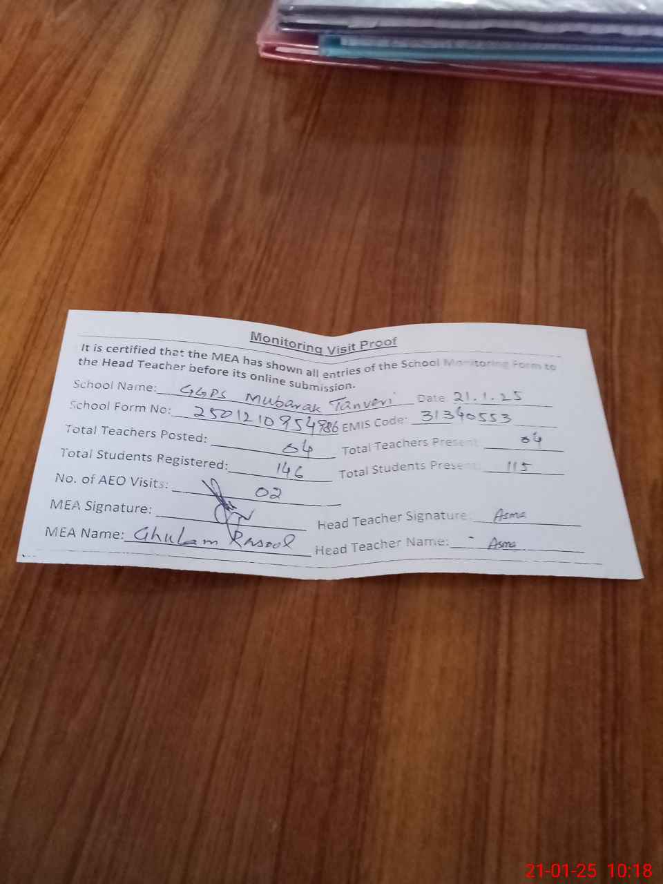| EMIS Code: 31340553 | Name of School: GGPS MUBARAK TANWERI | |||