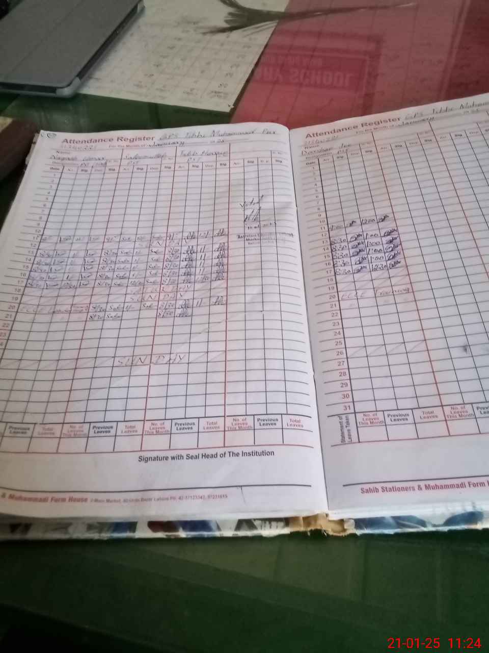 | CNIC | Full Name | Designation | R/C | Absence During Last Calender Month |