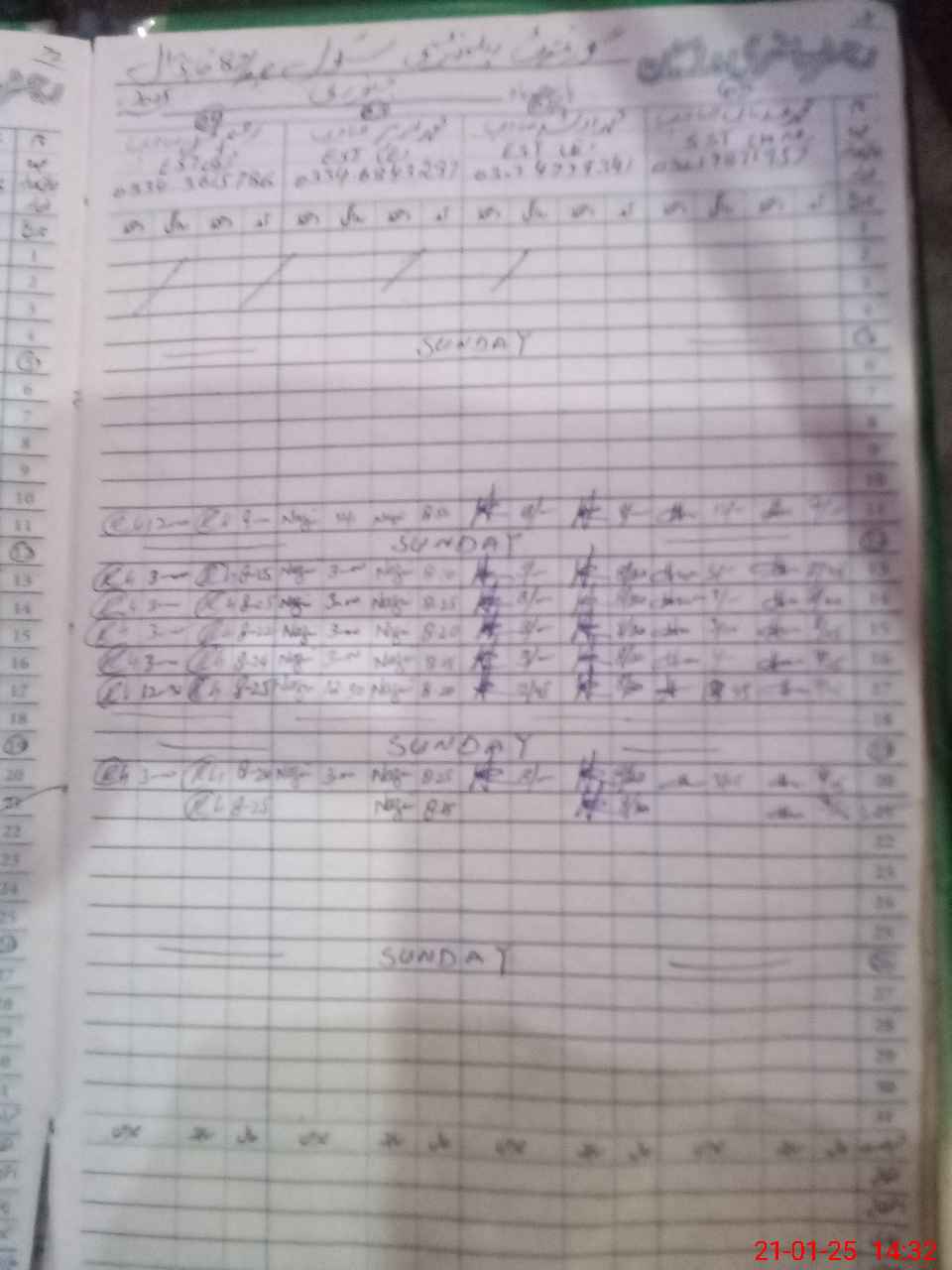 | CNIC | Full Name | Designation | R/C | Absence During Last Calender Month |