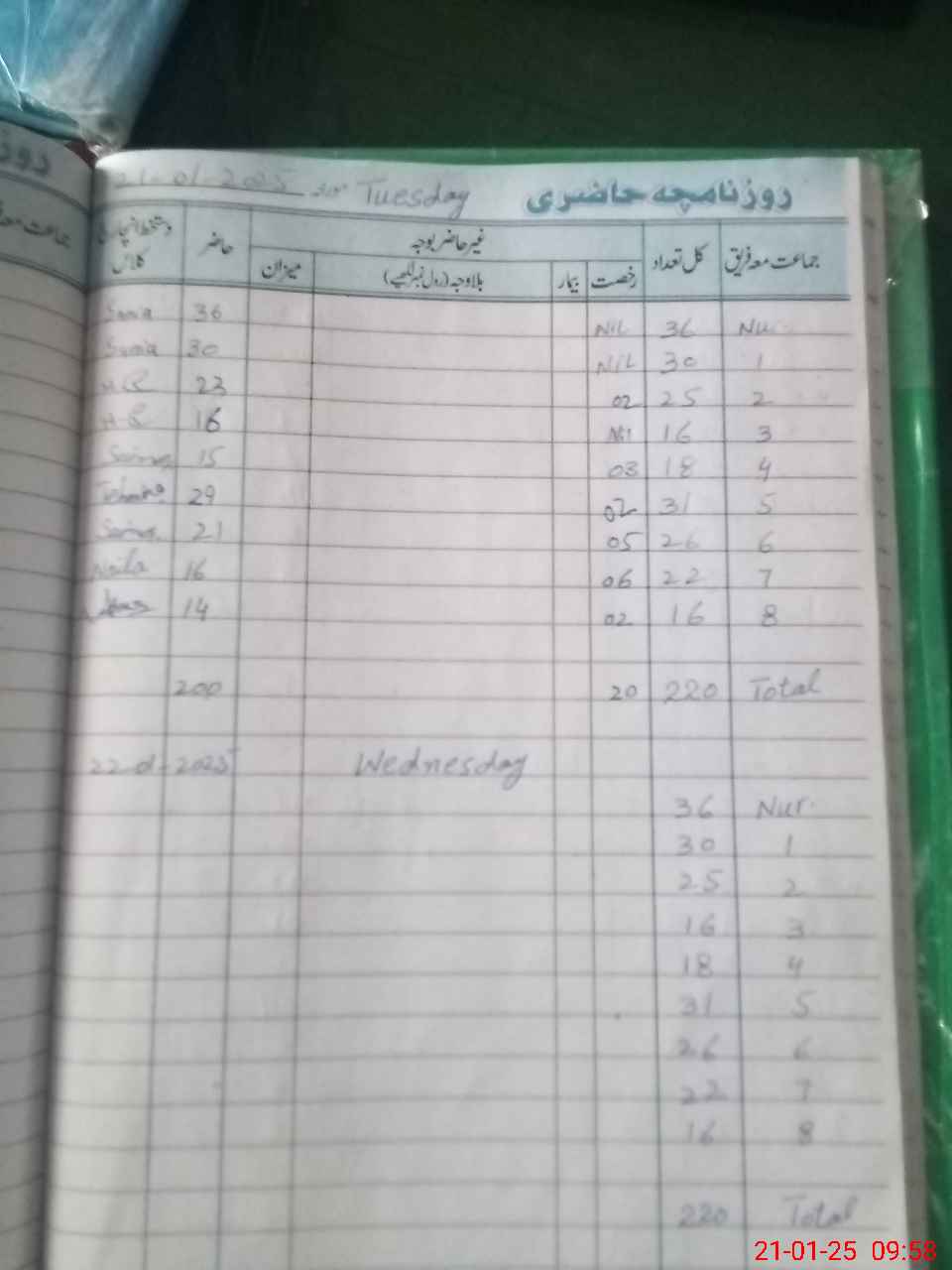| CNIC | Full Name | Designation | R/C | Absence During Last Calender Month |