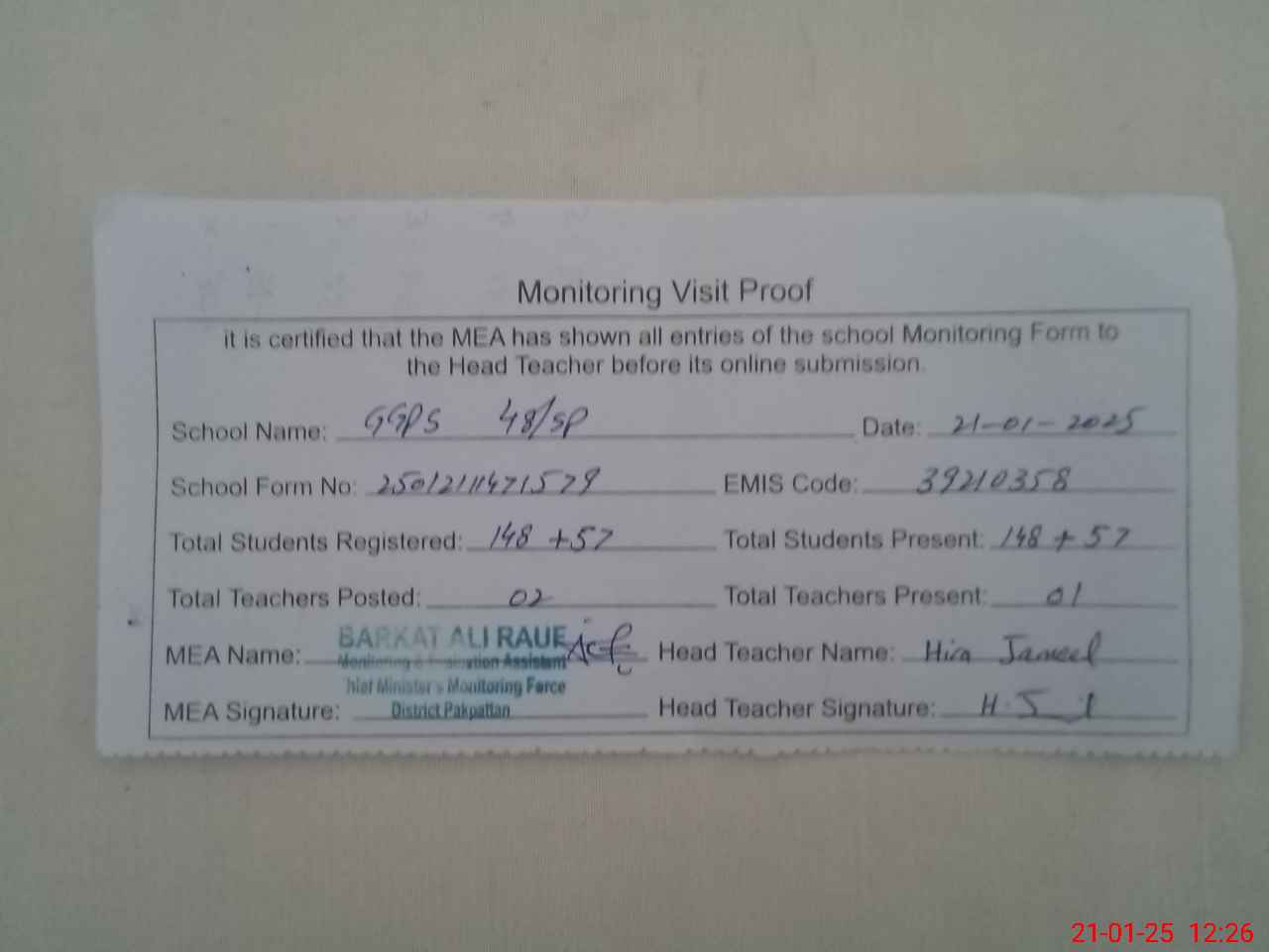 | EMIS Code: 39210358 | Name of School: GGPS 48 SP | |||