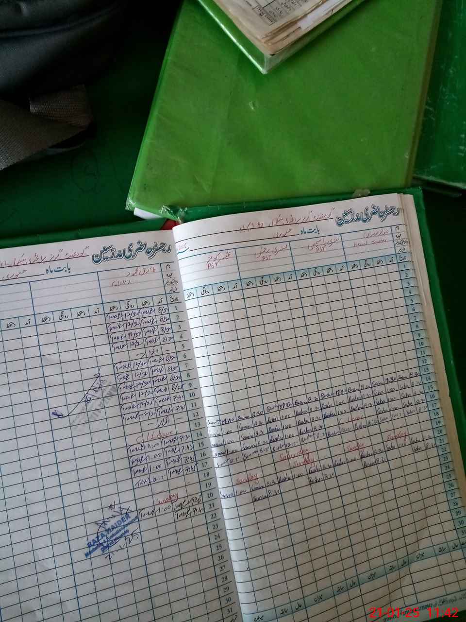 | CNIC | Full Name | Designation | R/C | Absence During Last Calender Month |