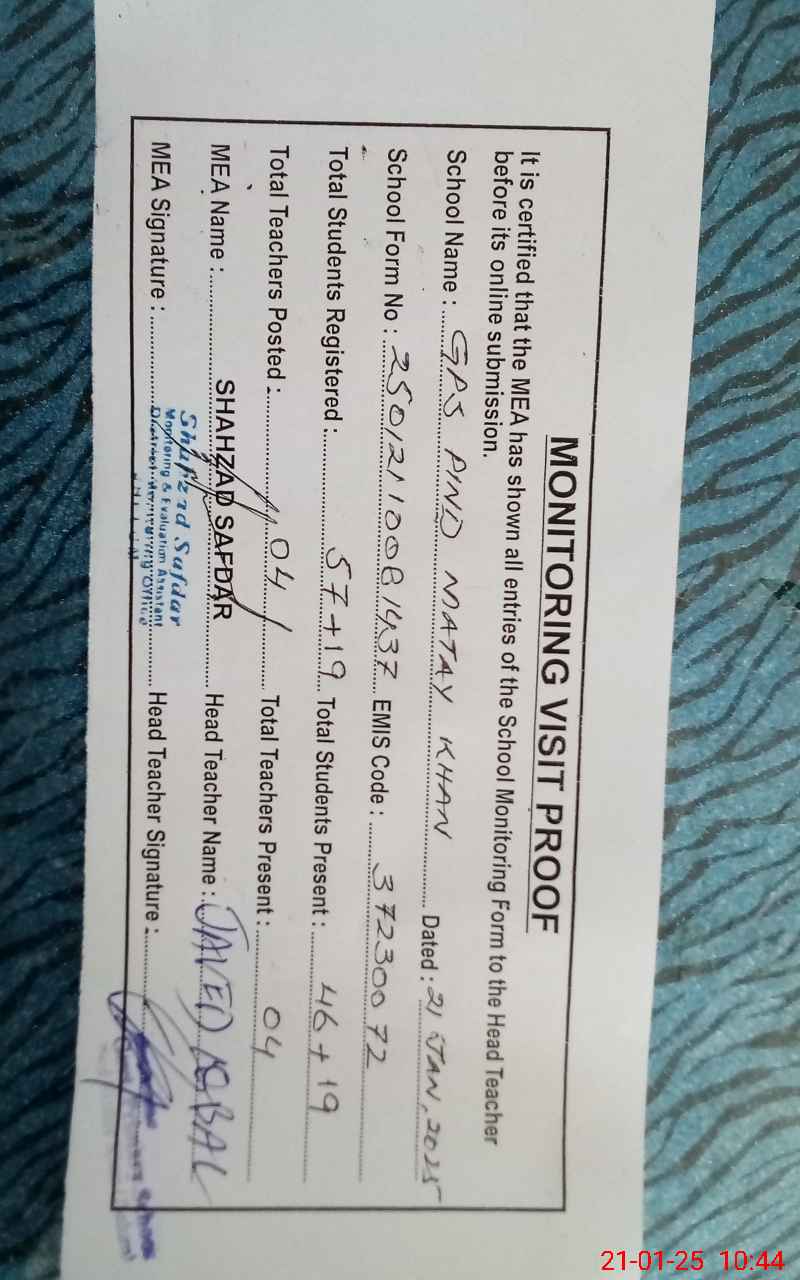 | EMIS Code: 37230072 | Name of School: GPS PIND MATTAY KHAN | |||